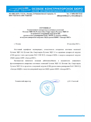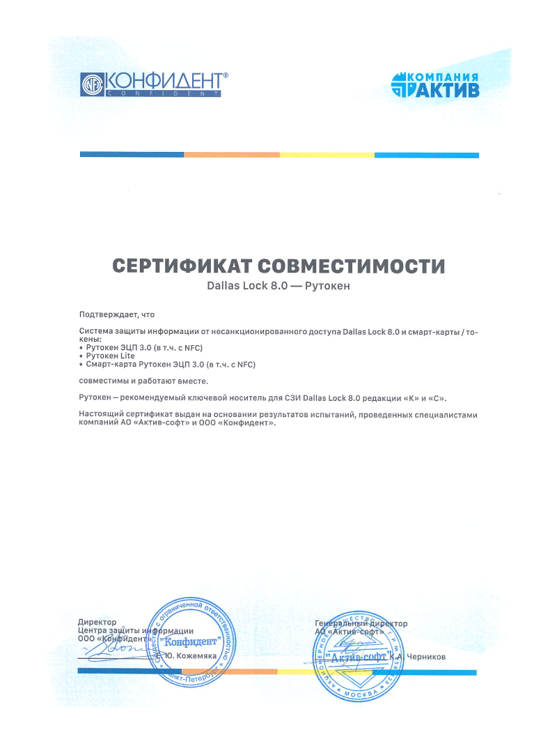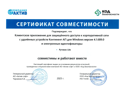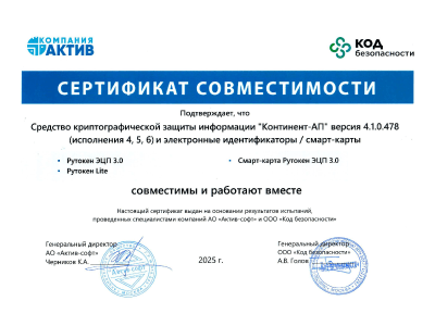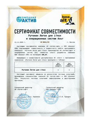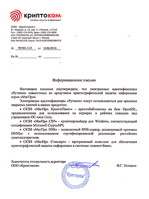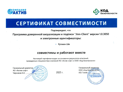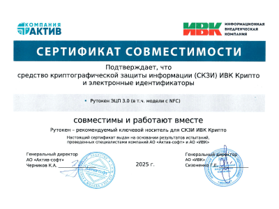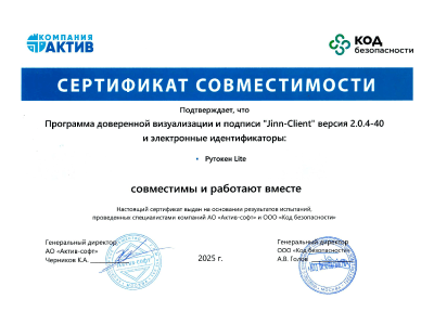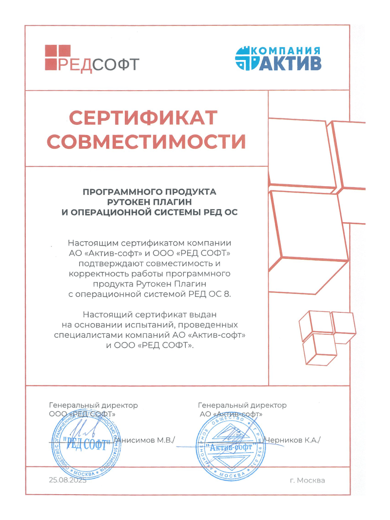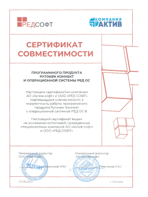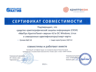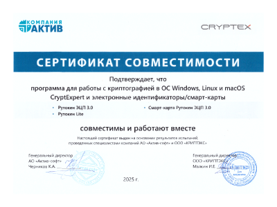 В этом разделе представлен перечень криптографического программного обеспечения, работа которого с продукцией Рутокен протестирована производителем и подтверждена сертификатом совместимости.