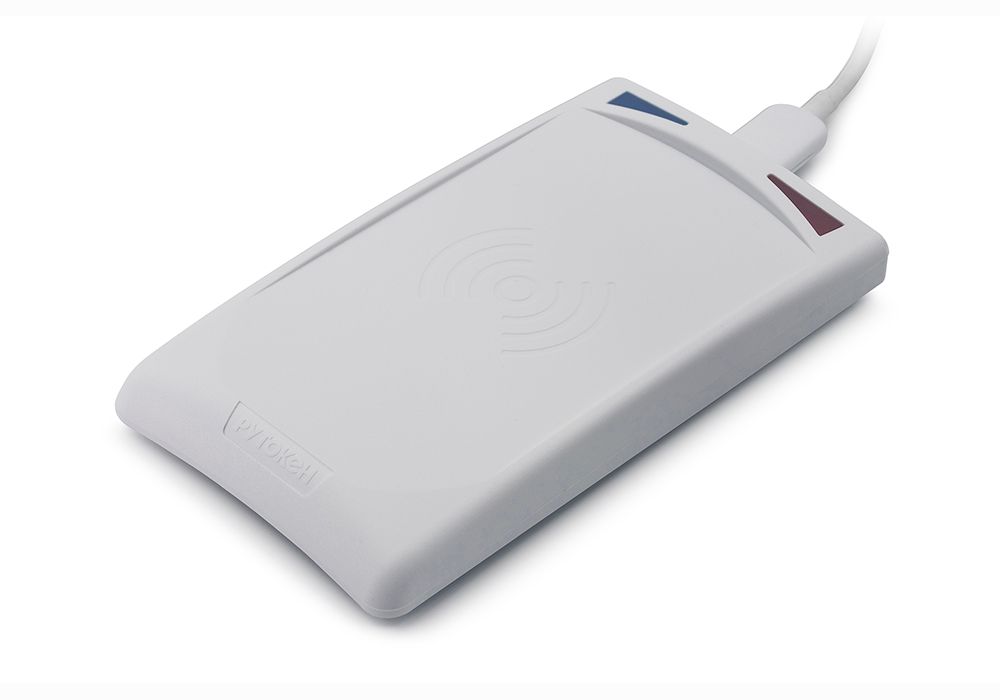 Работает с идентификаторами на частоте 13.56 МГц и считывает карты стандарта ISO 14443 Type A и B. Cовместим с операционными системами Windows, macOS и Linux.
