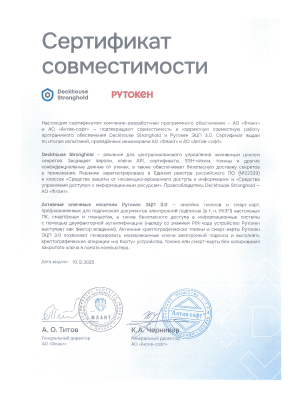 В этом разделе представлен перечень криптографического программного обеспечения, работа которого с продукцией Рутокен протестирована производителем и подтверждена сертификатом совместимости.